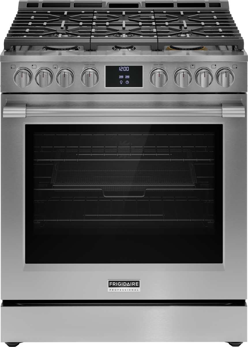 The Frigidaire Professional 30" Front Control Gas Range with Total Convection, features our most powerful and advanced convection system, which enables cooking modes like No Preheat, Air Fry, Slow Cook, Steam Bake, Steam Roast, Convection Roast, Convection Bake and more.Read More