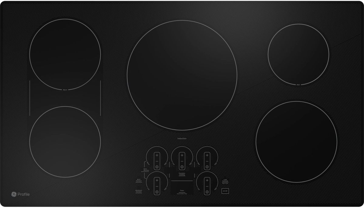 This smart cooktop features Built-In WiFi so you can monitor your burners and view power levels, precision temperature, or on/off.