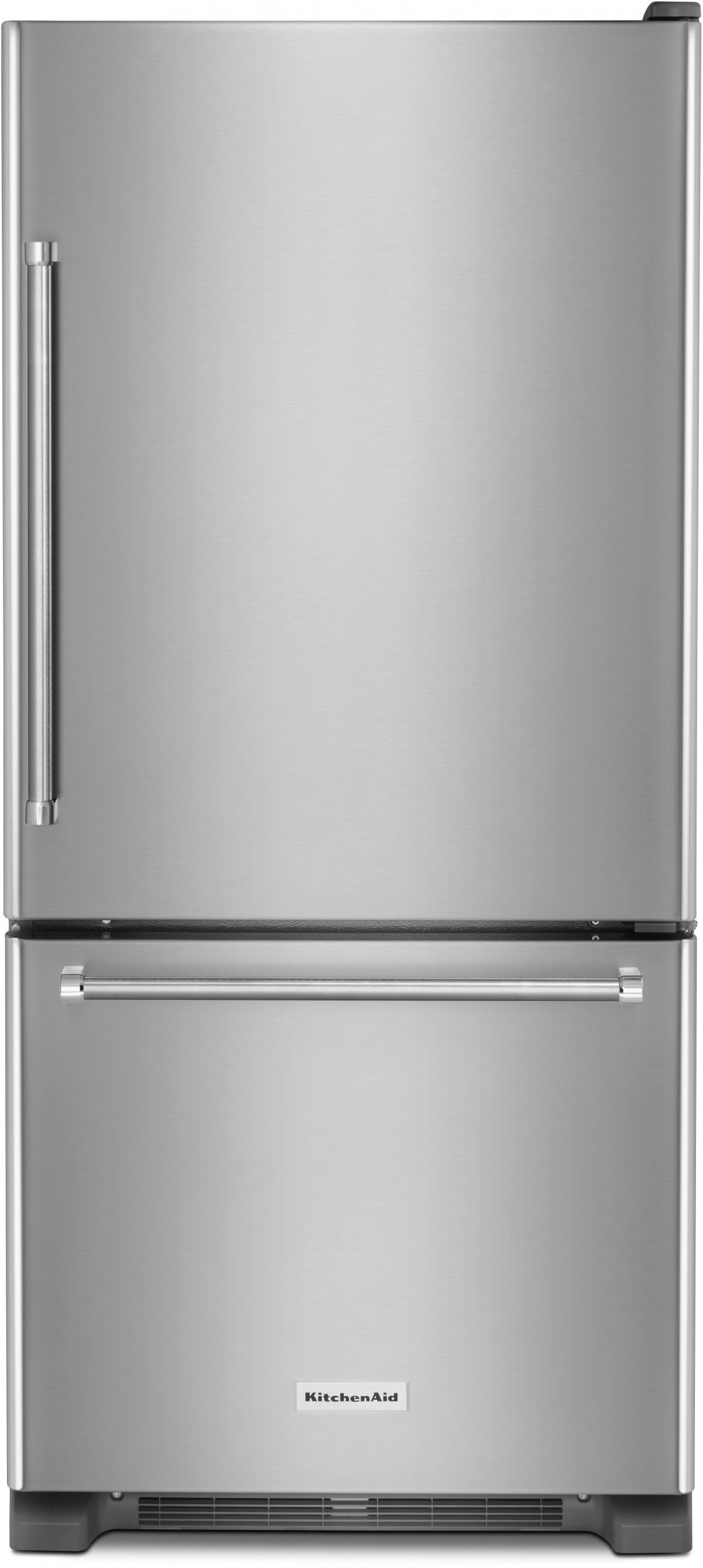 A bold blend of professionally-inspired styling and sleek touches for the home. This refrigerator features Satin Textured Handles with iconic KitchenAid Brand Medallions, a beautiful chrome frame surrounding the exterior water and ice dispenser and the KitchenAid® Badge.